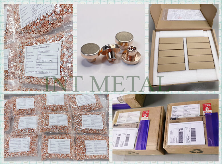 DongGUAN INT MIOTAIL TECH CO LTDglacann an próiseas ilchodach fuarbhrúite (ceannteideal fuar), a chomhcheanglaíonn cóimhiotal airgid nó airgid le copar sa stát soladach trí bhrú ollmhór. Cinntíonn an próiseas seo tiús aonfhoirmeach na ciseal airgid agus neart nascáil an-ard, an teagmhálacha airgidarna dtáirgeadh agINT MIOTAILis féidir le hiontaofacht shaolré táirgí custaiméirí a ráthú.